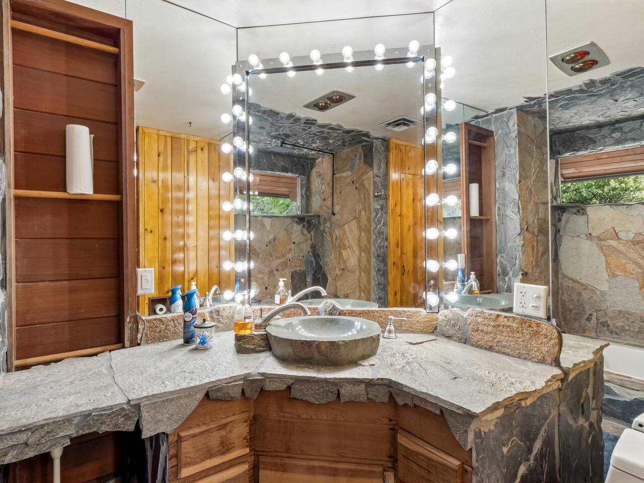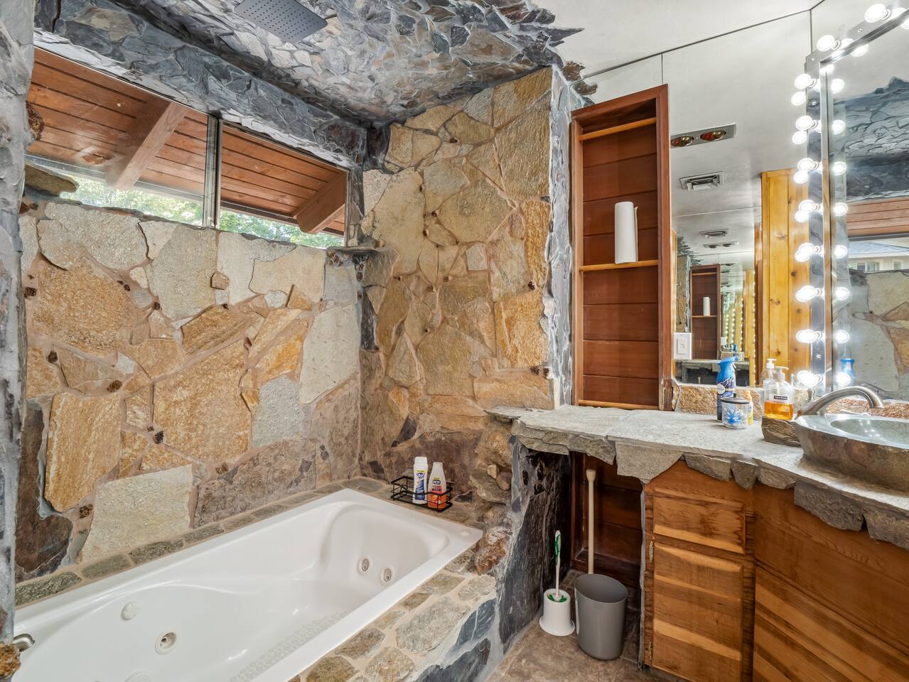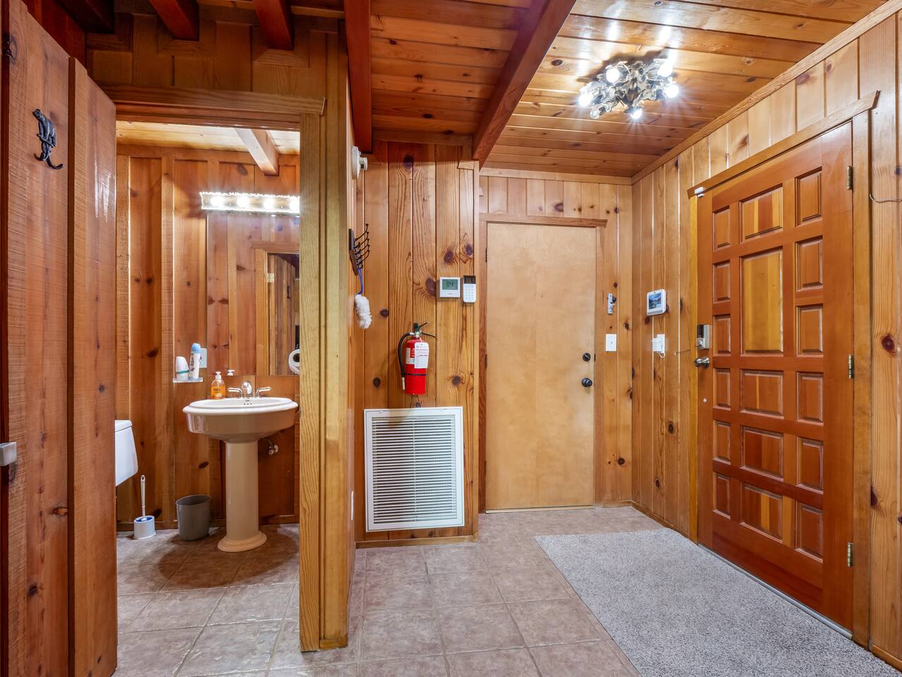 PERSONAL AMENITIES: We provide a starter kit: towels, shampoo, hand soap, toilet paper, paper towels & trash can liners. ENTRY: A keypad is located on the main entrance of the house. A personalized entry code will be provided to you prior to your stay. OUTDOOR SPACE: The outdoor space includes BBQ grill and ample dining tables, chairs, and couch. PARKING: There is ample in the driveway in front of the house. THE DRIVE: During the winter months we can experience some snow. We recommend either a 4x4 vehicle or chains. INTERNET: We have Vyfe that should allow you to access the internet from anywhere inside the home. BEDROOMS: ✦ Bedroom 1: Second floor - 1 King bed and a fireplace ✦ Bedroom 2: Second floor - 1 Full bed ✦ Bedroom 3: Second floor loft - 2 Queen beds ✦ Bedroom 4: Basement - 2 bunk beds (Twin and Full) ✦ Bedroom 5: Basement - 1 Queen bed BATHROOMS: ✦ Bathroom 1: Upstairs with single vanity sink, a jetted tub, and stand up shower ✦ Bathroom 2: Downstairs with 2 vanity sink and enclosed stand up shower ✦ Bathroom 1: Half bathroom at the main house level KITCHEN: Fully equipped with appliances: refrigerator, oven, stove, microwave, coffee maker, kettle, crockpot and all the basic kitchen essentials; Pots/Pans/Plates/Cups/Utensils OCCUPANCY: Maximum of 16 guests, including children. PARKING: Limited to 4 vehicles maximum. Please plan accordingly, as additional cars are not permitted. RENTAL AGREEMENT: ✦This property requires a rental agreement to be signed prior to your stay. Details will be provided after booking.