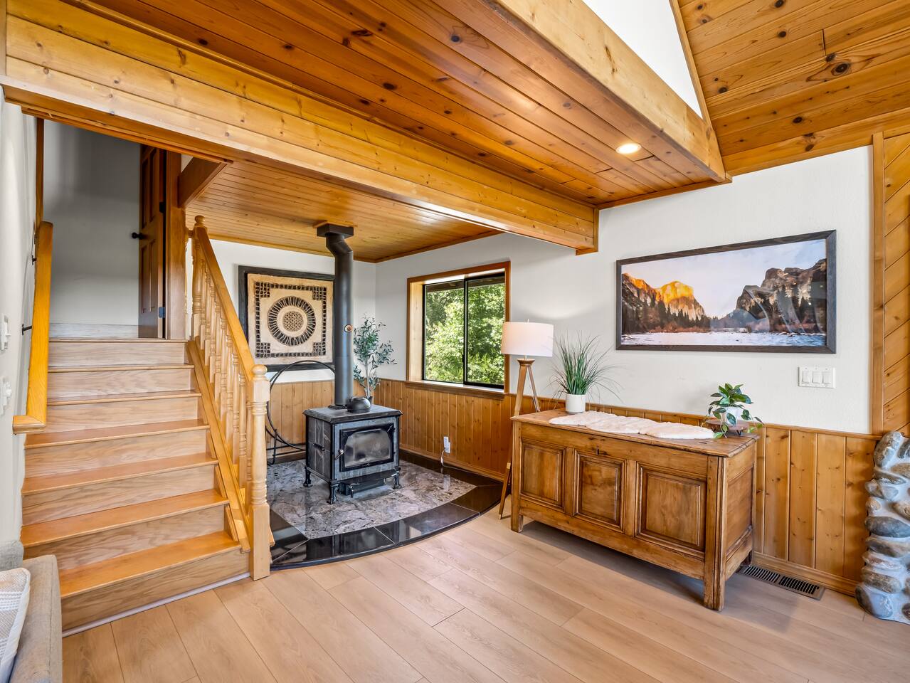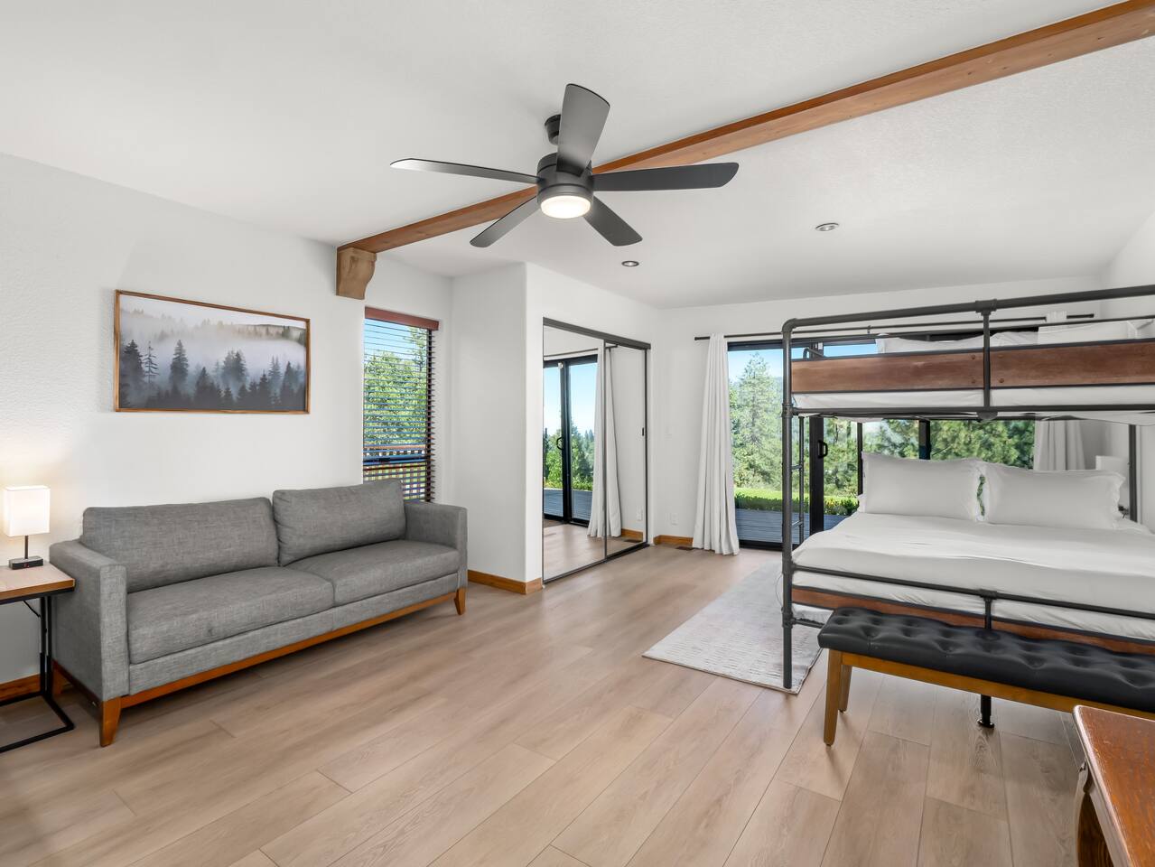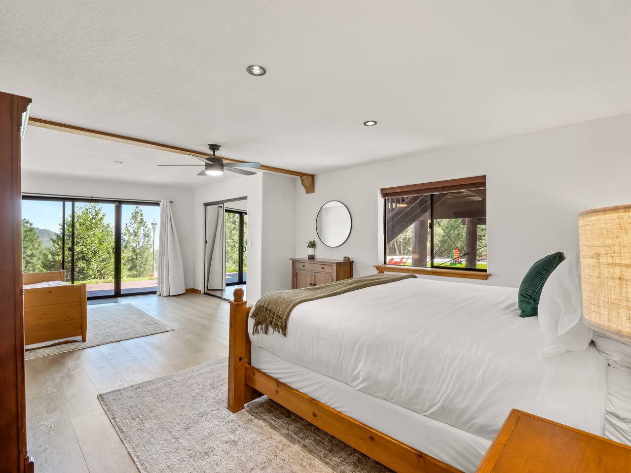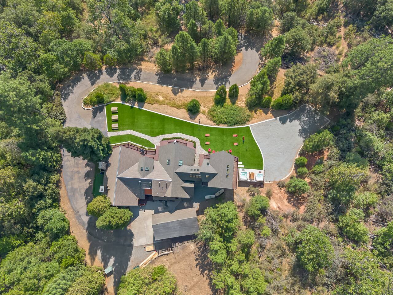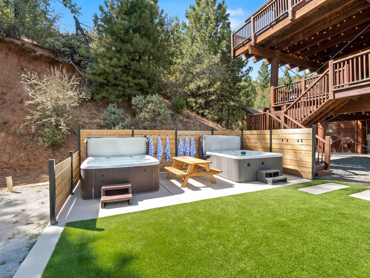PERSONAL AMENITIES: We provide a starter kit: towels, shampoo, hand soap, toilet paper, paper towels & trash can liners. ENTRY: A keypad is located around the back of the house on the French doors. A personalized entry code will be provided to you prior to your stay. OUTDOOR SPACE: The outdoor space includes 2 hot tubs, 2 fire pits, BBQ, ample dining tables and chairs, a hammock, outdoor games, and more! PARKING: There are three designated parking spots in front of the house, marked by the curb, with additional parking available in the back near the main entrance. The maximum number of vehicles allowed is six. THE DRIVE: During the winter months we can experience some snow as we are at 3,800 ft in elevation. We recommend either a 4x4 vehicle or chains. INTERNET: We have a whole house mesh system that should allow you to access the internet from anywhere inside the home. BEDROOMS: ✦ Bedroom 1: First floor - 2 Queen bunk beds (4 total beds) ✦ Bedroom 2: First floor - King bed and a daybed that converts into 2 separate twin beds ✦ Bedroom 3: First floor - 2 Queen beds ✦ Bedroom 4: Second floor - King bed with attached bathroom ✦ Bedroom 5: Second floor - King bed BATHROOMS: ✦ Bathroom 1: Second floor- Dual sink vanity with soaker tub and spacious full body shower in Bedroom 4 ✦ Bathroom 2: First floor - Single sink vanity and stand up shower ✦ Bathroom 3: First floor - Single sink vanity and stand up shower KITCHEN: Fully equipped with appliances: refrigerator, oven, stove, microwave, coffee maker, kettle, crockpot and all the basic kitchen essentials; Pots/Pans/Plates/Cups/Utensils IMPORTANT NOTE for HOT TUB: To maintain a clean and pleasant spa environment it is very important to please shower BEFORE using the spa, or, trust us... it will get funky! The spa has a hard time breaking down lotions, oils, perfumes, etc. Additionally, please help us keep the spas tidy by disposing of trash properly. Please note that an additional fee may be charged for excessive dirtiness. Use of the property and all amenities (incl. kayaks, paddle boards, hot tub, etc.) is at your own risk. Host and owner not liable for injury or damage. RENTAL AGREEMENT: ✦This property requires a rental agreement to be signed prior to your stay. Details will be provided after booking.