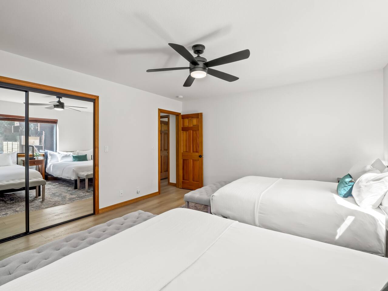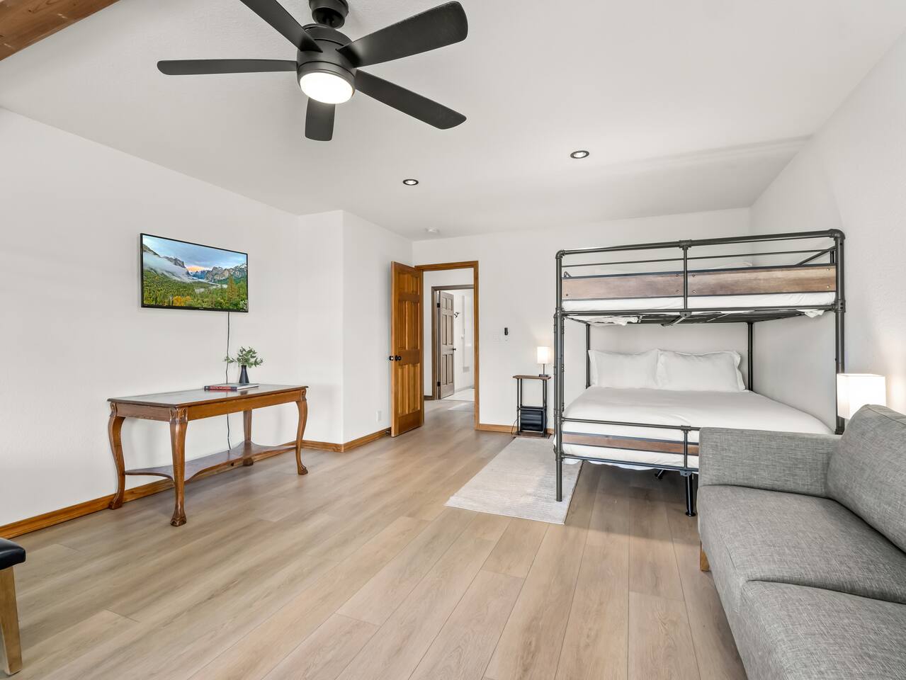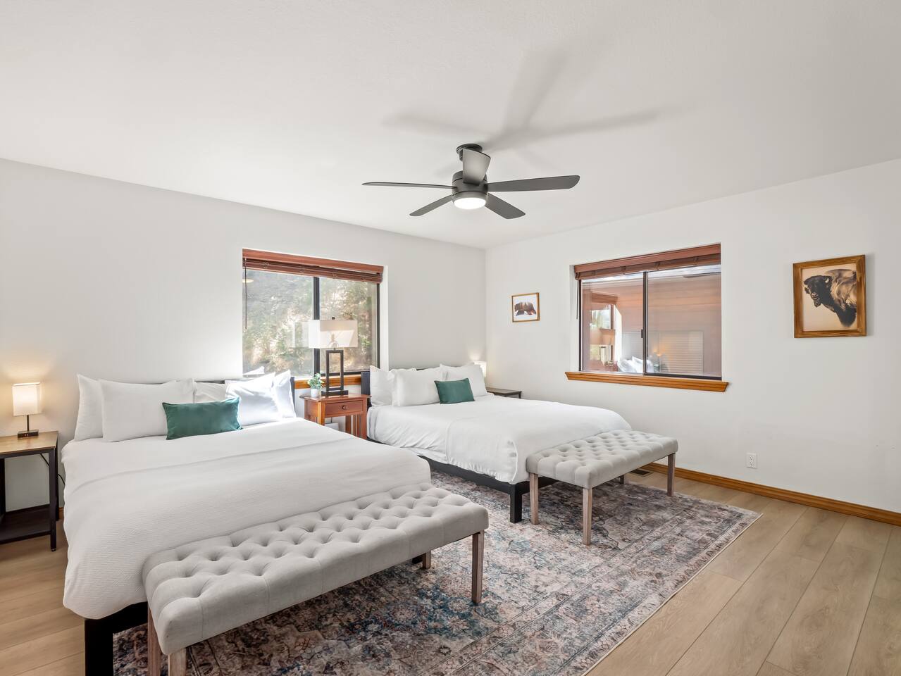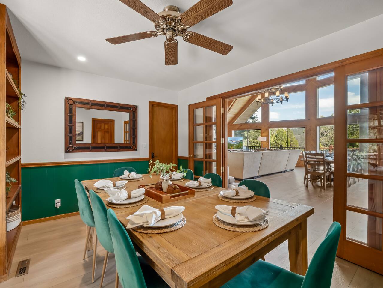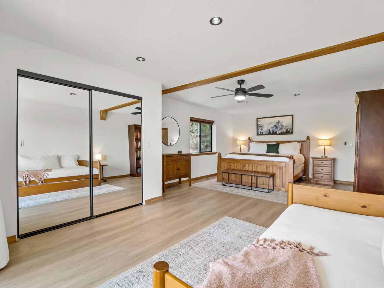 PERSONAL AMENITIES: We provide a starter kit: towels, shampoo, hand soap, toilet paper, paper towels & trash can liners. ENTRY: A keypad is located around the back of the house on the French doors. A personalized entry code will be provided to you prior to your stay. OUTDOOR SPACE: The outdoor space includes 2 hot tubs, 2 fire pits, BBQ, ample dining tables and chairs, a hammock, outdoor games, and more! PARKING: There are three designated parking spots in front of the house, marked by the curb, with additional parking available in the back near the main entrance. The maximum number of vehicles allowed is six. THE DRIVE: During the winter months we can experience some snow as we are at 3,800 ft in elevation. We recommend either a 4x4 vehicle or chains. INTERNET: We have a whole house mesh system that should allow you to access the internet from anywhere inside the home. BEDROOMS: ✦ Bedroom 1: First floor - 2 Queen bunk beds (4 total beds) ✦ Bedroom 2: First floor - King bed and a daybed that converts into 2 separate twin beds ✦ Bedroom 3: First floor - 2 Queen beds ✦ Bedroom 4: Second floor - King bed with attached bathroom ✦ Bedroom 5: Second floor - King bed BATHROOMS: ✦ Bathroom 1: Second floor- Dual sink vanity with soaker tub and spacious full body shower in Bedroom 4 ✦ Bathroom 2: First floor - Single sink vanity and stand up shower ✦ Bathroom 3: First floor - Single sink vanity and stand up shower KITCHEN: Fully equipped with appliances: refrigerator, oven, stove, microwave, coffee maker, kettle, crockpot and all the basic kitchen essentials; Pots/Pans/Plates/Cups/Utensils IMPORTANT NOTE for HOT TUB: To maintain a clean and pleasant spa environment it is very important to please shower BEFORE using the spa, or, trust us... it will get funky! The spa has a hard time breaking down lotions, oils, perfumes, etc. Additionally, please help us keep the spas tidy by disposing of trash properly. Please note that an additional fee may be charged for excessive dirtiness. Use of the property and all amenities (incl. kayaks, paddle boards, hot tub, etc.) is at your own risk. Host and owner not liable for injury or damage. RENTAL AGREEMENT: ✦This property requires a rental agreement to be signed prior to your stay. Details will be provided after booking.