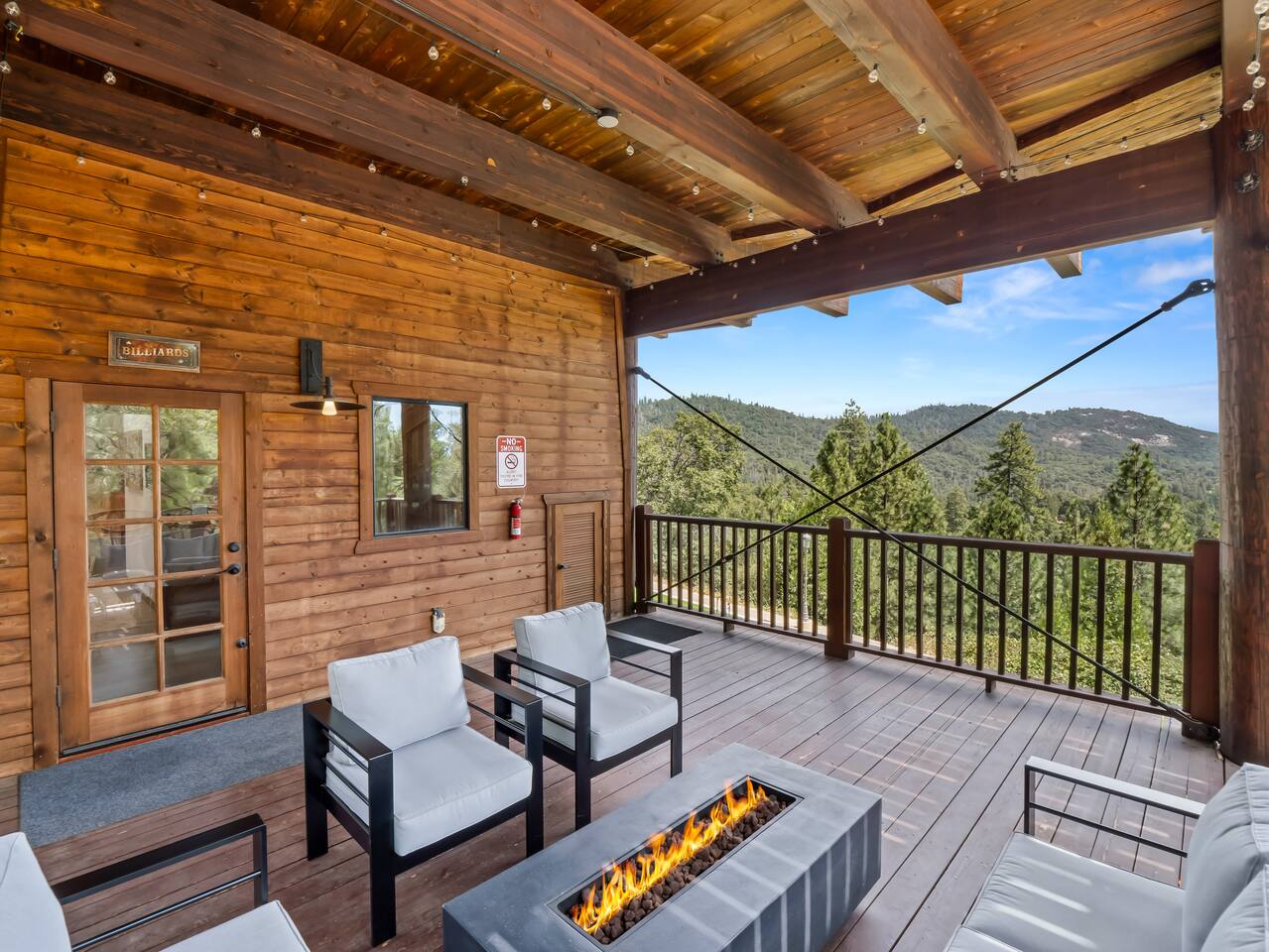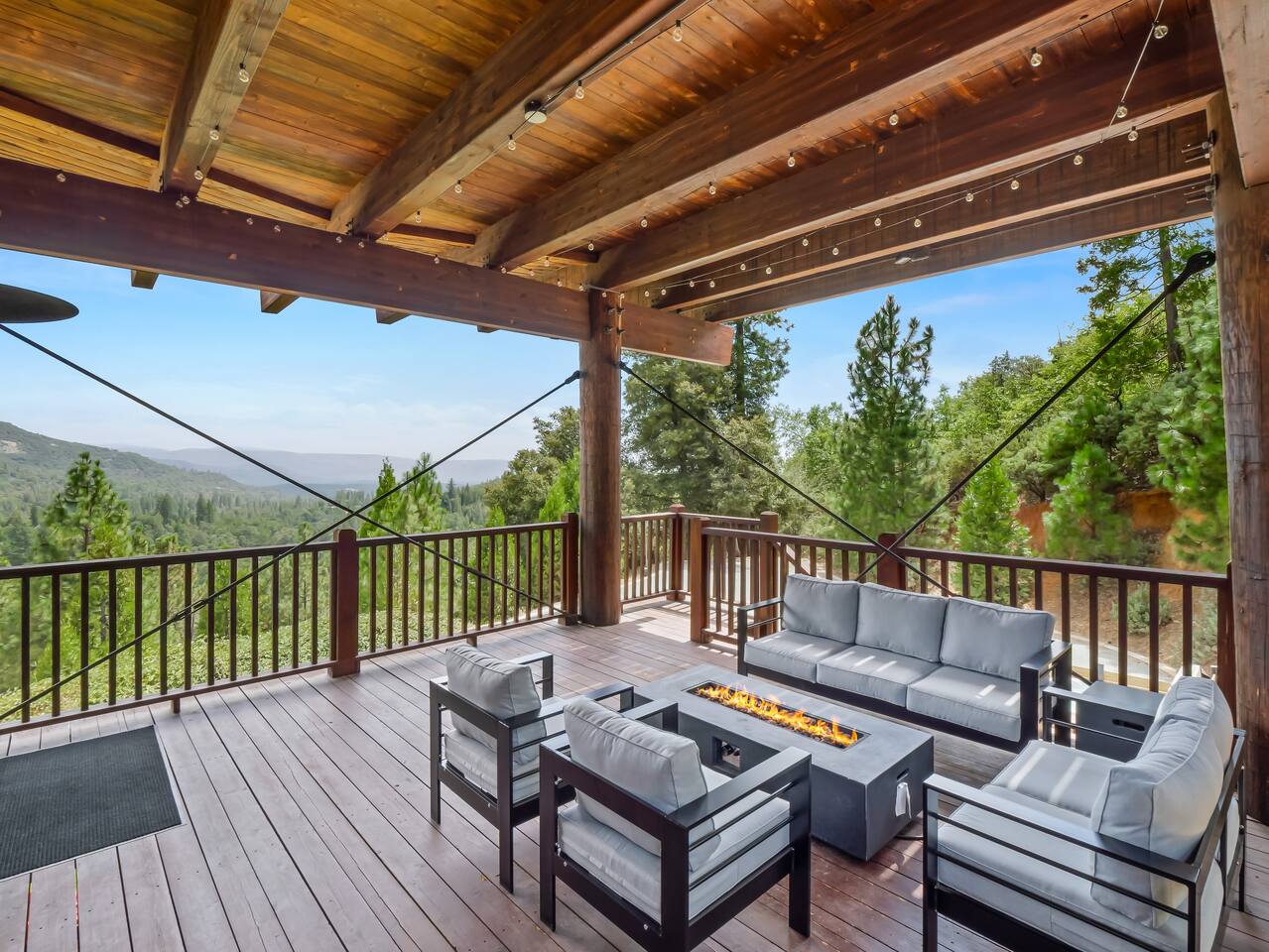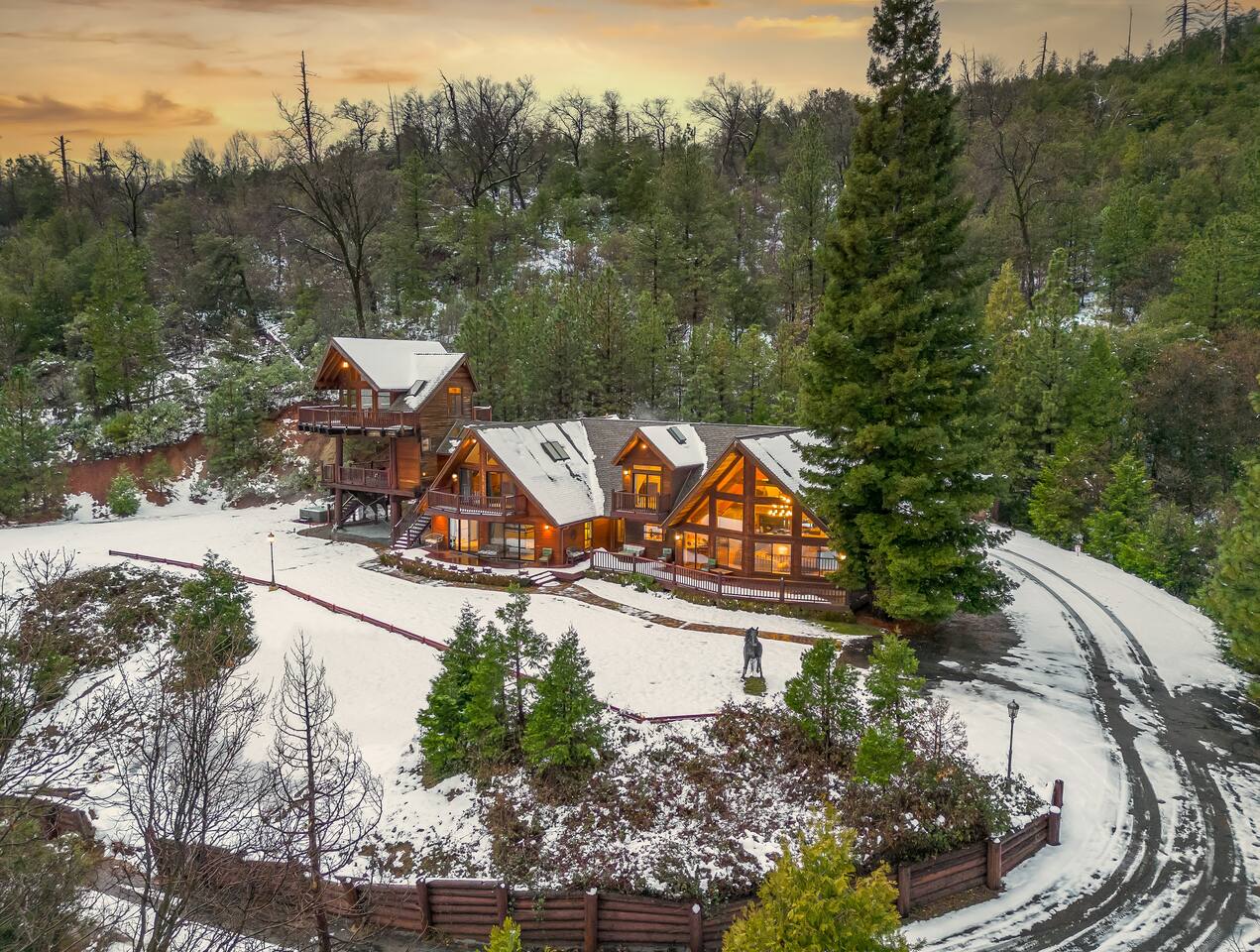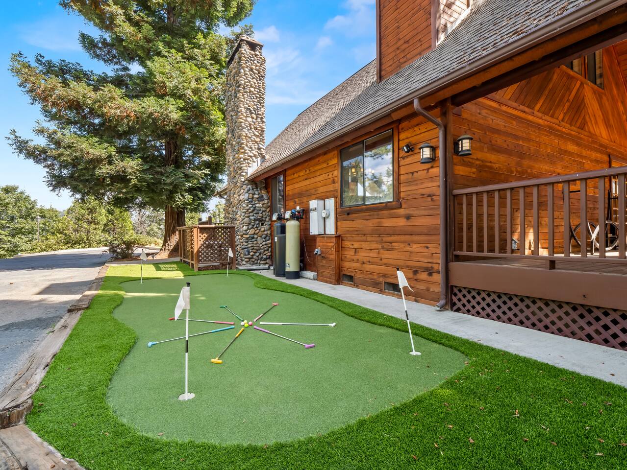 ABOUT THE PROPERTY: ✦ 4400 sq ft custom A-Frame Cabin ✦ Sleeps 20 max (including children) in 5 bedrooms ✦ 3 full bathrooms KEY FEATURES: ✦ 2 Fire Pits - Wood and Propane ✦ 2 Hot Tubs ✦ Putting Green ✦ Pool Table ✦ BBQ ✦ Starlink ✦ Cornhole ✦ 55" Roku Smart TV with apps such as Netflix, Amazon, Hulu, etc. ✦ Backup Generator to ensure your comfort during power outages ✦ Woodburning fireplace ✦ Wood stove ✦ Direct access to 300,000+ acres of national forest ✦ Pets allowed with an additional fee of $150 per pet. ✦ Kid friendly essentials: Pack 'n Play and high chair ✦ 3 King beds & 6 queen beds DISTANCE TO LOCAL ATTRACTIONS: ✦ Yosemite South Gate Entrance - 23 miles ✦ Mariposa Sequoia Grove - 26 miles ✦ Bass Lake - 6 miles ✦ Sugar Pine Railroad - 20 miles ✦ Lewis Creek Trail - 14 miles ✦ Oakhurst - 11 miles ✦ North Fork - 8 miles TRANSPORTATION: ✦ Fresno Airport (FAT) - 45 miles WHAT TO EXPECT: ✦ Sound travels far, and although we sit on 8 acres, please be respectful of your noise levels at all times throughout the day and especially during quiet hours so our neighbors can enjoy the peaceful area they live in. Please abide by Madera County Noise Ordinance regulations 9.58.020 "Residence. It shall be unlawful for any person to make, continue, or cause to be made or continued, any disturbing, excessive or offensive noise which causes discomfort or annoyance to reasonable persons of normal sensitivity residing in the area." This quote is valid during all times of the day. ✦ We suggest bringing a 4x4 or chains in the winter (October-March) ✦ We are out in nature and back up to 300,000 acres of national forest, resulting in wildlife and critters that are occasionally around the property ✦ Partying, smoking, and any violation of the house rules will result in a $1,000 charge and possible removal from the property ✦ We always suggest getting travel insurance for those "life happens" moments ✦ The house has huge windows so cooling the home can be difficult ✦ You may encounter wildlife such as deer and even bears. Please remove all food from your vehicles, close and latch outdoor trash bins, and keep an eye on any pets you may have with you. ✦ The driveway is narrow and somewhat bumpy