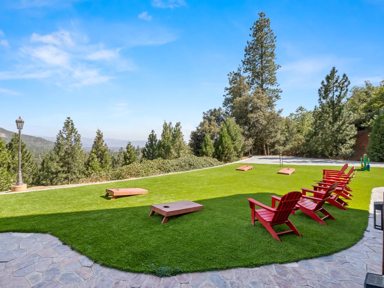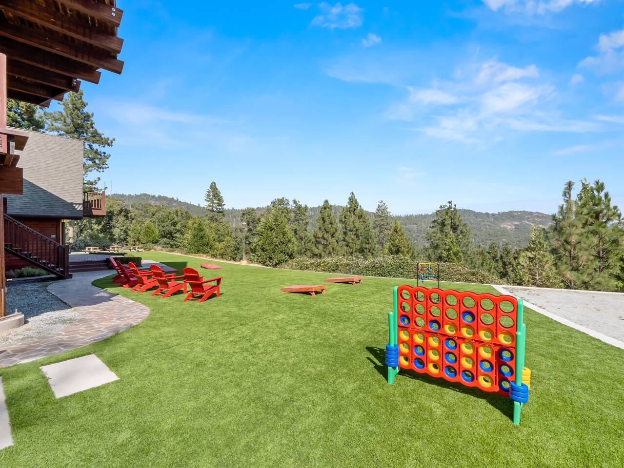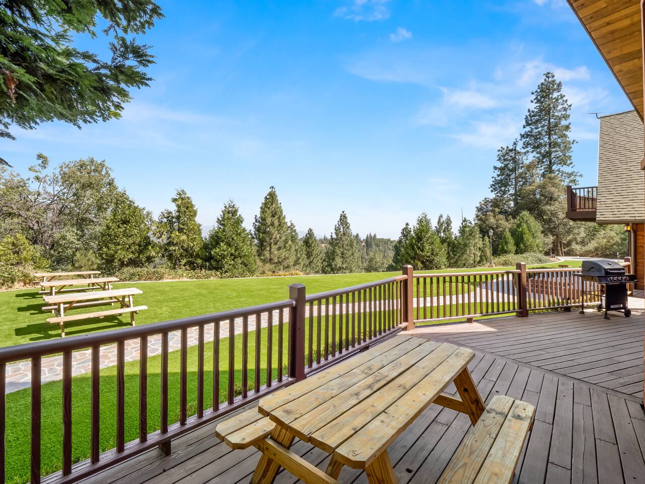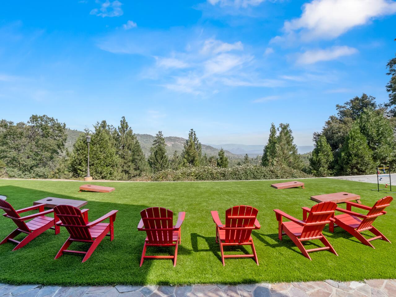 ABOUT THE PROPERTY: ✦ 4400 sq ft custom A-Frame Cabin ✦ Sleeps 20 max (including children) in 5 bedrooms ✦ 3 full bathrooms KEY FEATURES: ✦ 2 Fire Pits - Wood and Propane ✦ 2 Hot Tubs ✦ Putting Green ✦ Pool Table ✦ BBQ ✦ Starlink ✦ Cornhole ✦ 55" Roku Smart TV with apps such as Netflix, Amazon, Hulu, etc. ✦ Backup Generator to ensure your comfort during power outages ✦ Woodburning fireplace ✦ Wood stove ✦ Direct access to 300,000+ acres of national forest ✦ Pets allowed with an additional fee of $150 per pet. ✦ Kid friendly essentials: Pack 'n Play and high chair ✦ 3 King beds & 6 queen beds DISTANCE TO LOCAL ATTRACTIONS: ✦ Yosemite South Gate Entrance - 23 miles ✦ Mariposa Sequoia Grove - 26 miles ✦ Bass Lake - 6 miles ✦ Sugar Pine Railroad - 20 miles ✦ Lewis Creek Trail - 14 miles ✦ Oakhurst - 11 miles ✦ North Fork - 8 miles TRANSPORTATION: ✦ Fresno Airport (FAT) - 45 miles WHAT TO EXPECT: ✦ Sound travels far, and although we sit on 8 acres, please be respectful of your noise levels at all times throughout the day and especially during quiet hours so our neighbors can enjoy the peaceful area they live in. Please abide by Madera County Noise Ordinance regulations 9.58.020 "Residence. It shall be unlawful for any person to make, continue, or cause to be made or continued, any disturbing, excessive or offensive noise which causes discomfort or annoyance to reasonable persons of normal sensitivity residing in the area." This quote is valid during all times of the day. ✦ We suggest bringing a 4x4 or chains in the winter (October-March) ✦ We are out in nature and back up to 300,000 acres of national forest, resulting in wildlife and critters that are occasionally around the property ✦ Partying, smoking, and any violation of the house rules will result in a $1,000 charge and possible removal from the property ✦ We always suggest getting travel insurance for those "life happens" moments ✦ The house has huge windows so cooling the home can be difficult ✦ You may encounter wildlife such as deer and even bears. Please remove all food from your vehicles, close and latch outdoor trash bins, and keep an eye on any pets you may have with you. ✦ The driveway is narrow and somewhat bumpy
