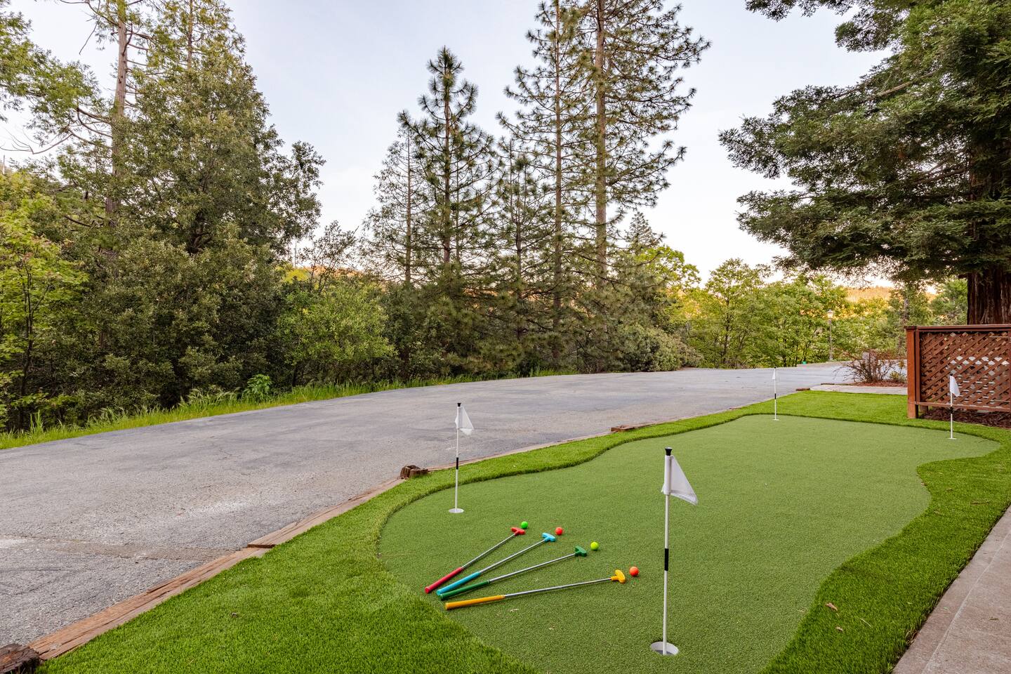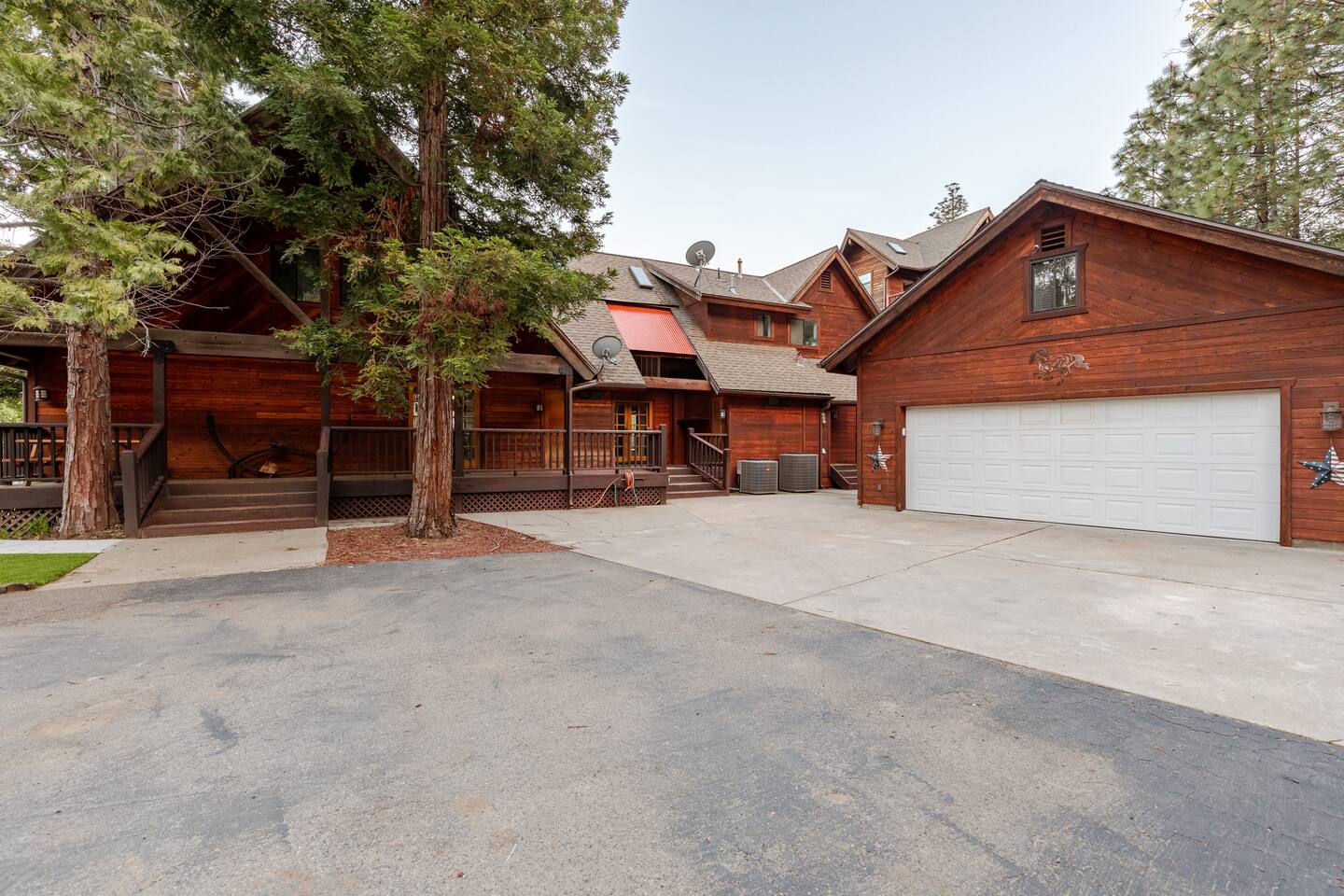The home has plenty of parking and can easily accommodate 10+ cars if need be (with a bit of tandem parking). The roads are all fully paved to the home as well. We recommend 4x4 or chains during the winter months as we occasionally get snow.