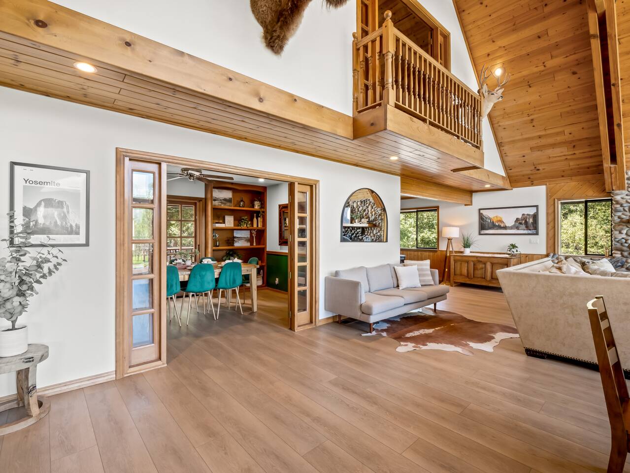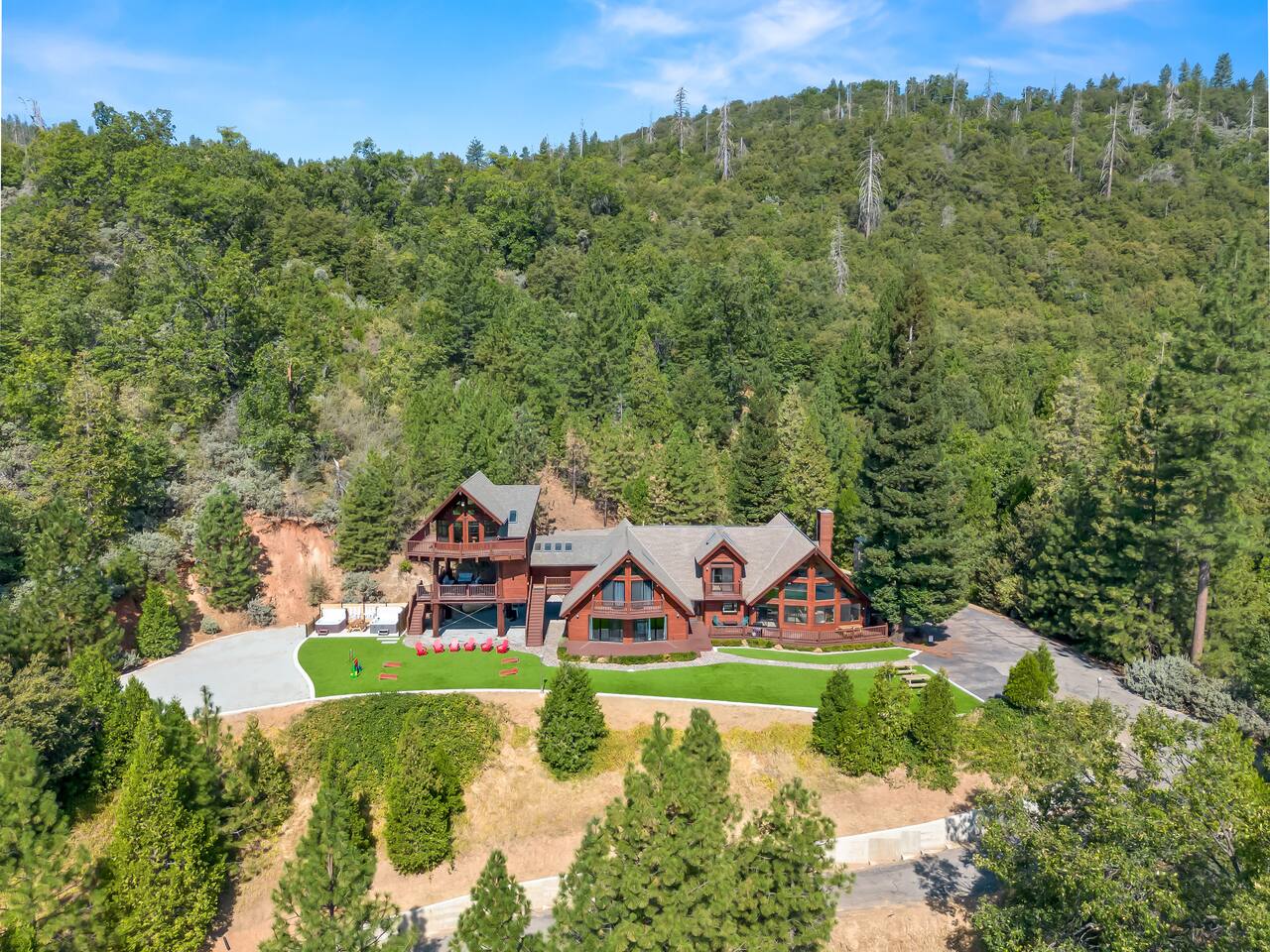 Experience Yosemite with us at Apex Lodge in North Fork, CA! This custom A-Frame mountain retreat is situated on 8 acres and offers breathtaking views from every window. With room for up to 20 people, this is the perfect getaway for family reunions, work retreats, or a vacation with friends. 40 mins to Yosemite's south gate entrance, 10 mins to Bass Lake & 25 mins to Oakhurst! FEATURES: ✦ 2 Hot Tubs ✦ Putting Green ✦ Pool Table ✦ BBQ ✦ Starlink ✦ EV charger (Level 2)