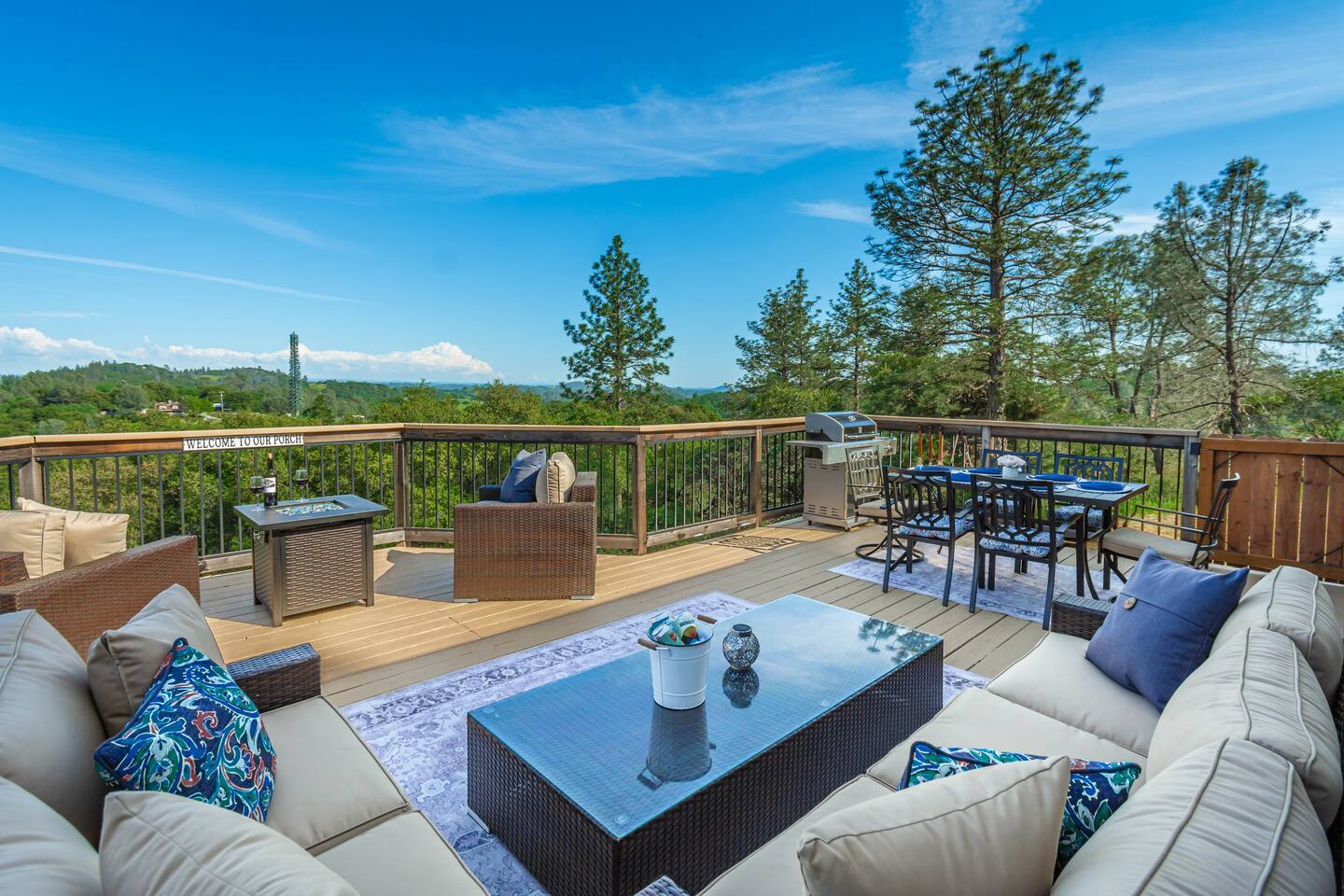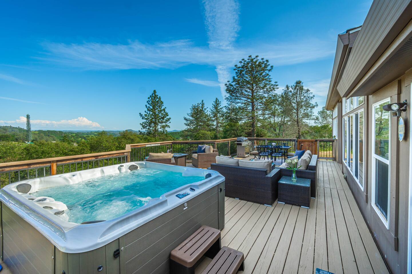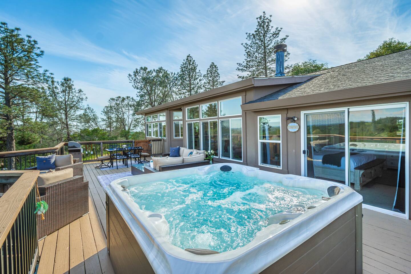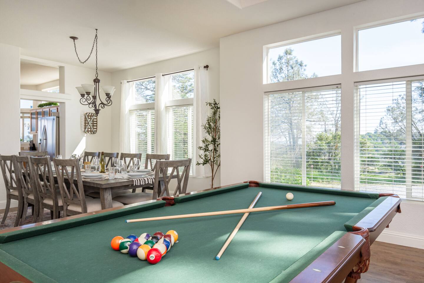 Escape to Cool, CA & enjoy stunning views of the Sierra Nevada Mountains from the comfort of Sunrise View. Sitting atop 12 acres, Sunrise View is perfect for wedding goers, outdoor enthusiasts, friends, & families. With 7 beds, there's plenty of room for everyone. Located 5 min to Black Oak Mountain Vineyard, 20 min to Auburn, 15 min to Coloma. Hiking, rafting, & mountain biking are only minutes away. Experience The Divide with us! FEATURES: ✦ Fire Pit ✦ Hot Tub ✦ Pool Table ✦ BBQ ✦ 3 King Beds
