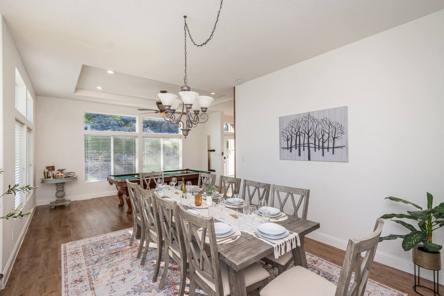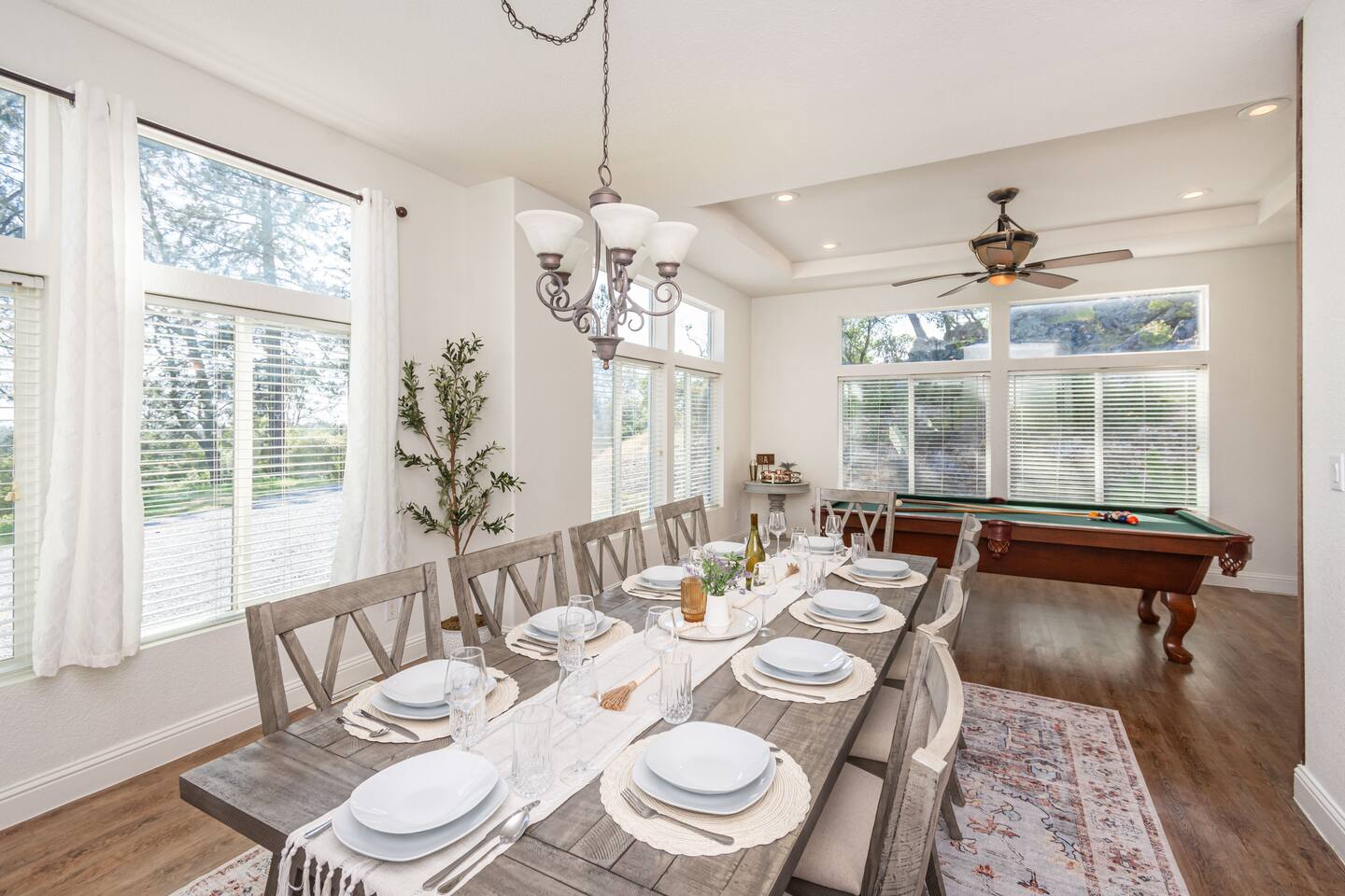 ABOUT THE PROPERTY: ✦ 2700 sqft ✦ 3 bedrooms & 7 beds ( 6 adults and 6 children under 6 years old) ✦ 2.5 bathrooms KEY FEATURES: ✦ Fire Pit ✦ Hot Tub ✦ Pool Table ✦ BBQ ✦ 2 Roku Smart TVs with apps such as Netflix, Amazon, Hulu, etc. ✦ Woodburning fireplace ✦ 3 King beds, 2 full beds, and 2 twin beds ✦ Coffee pot, Keurig, and kettle stocked with coffee, pods, and tea DISTANCE TO LOCAL ATTRACTIONS: ✦ Auburn - 9 miles ✦ Coloma - 14 miles ✦ Black Oak Mountain Vineyards - 2 miles ✦ Lotus View Ranch - 8 miles ✦ Auburn State Park - 6 miles WHAT TO EXPECT: ✦ Sound travels far and although we sit on 12 acres, please be respectful of quiet hours and our neighbors ✦ We are out in nature resulting in wildlife and critters that are occasionally around the property ✦ We stock firewood periodically. We suggest bringing some (just in case!) if you are going to have a fire. If there's any there, you are welcome to use it. ✦ Partying, smoking, and any violation of the house rules will result in a $1,000 charge ✦ We always suggest getting travel insurance for those "life happens" moments ✦ Any stay longer than 30 days will require signing a lease agreement ✦ You may encounter wildlife such as deer and even bears. Please remove all food from your vehicles, close and latch outdoor trash bins, and keep an eye on any pets you may have with you.