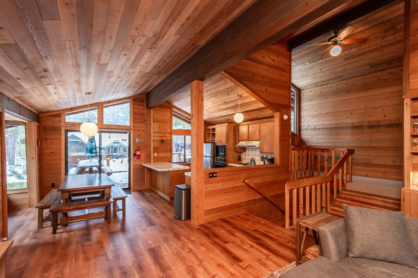 PERSONAL AMENITIES: We provide a starter kit: towels, shampoo, hand soap, toilet paper, paper towels & trash can liners. ENTRY: A smart lock is on the door and you will be provided an entry code prior to your arrival. OUTDOOR SPACE: The outdoor space includes a hot tub and 2 decks. The hot tub is accessible by walking around the house and is located under the back deck. PARKING: There is parking available in the front of the house. The maximum number of vehicles permitted is 4 and street parking is prohibited for short term rental guests per county guidelines. THE DRIVE: During the winter months we experience snow. We recommend either a 4x4 vehicle or chains. INTERNET: There is wifi available throughout the home. BEDROOMS: ✦ Bedroom 1: King bed with attached bathroom ✦ Bedroom 2: Twin bunk and twin trundle ✦ Bedroom 3: King bed ✦ Bedroom 4: Queen bed BATHROOMS: ✦ Bathroom 1: Dual vanity bathroom with shower and tub ✦ Bathroom 2: Single vanity with shower tub combo ✦ Bathroom 3: Single vanity with shower tub combo KITCHEN: The kitchen is fully equipped with a refrigerator, oven, stove, microwave, coffee maker, kettle, crockpot and all the basic kitchen essentials; Pots/Pans/Plates/Cups/Utensils IMPORTANT NOTE for HOT TUB: To maintain a clean and pleasant spa environment it is very important to please shower BEFORE using the spa, or, trust us... it will get funky! The spa has a hard time breaking down lotions, oils, perfumes, etc. Additionally, please help us keep the spas tidy by disposing of trash properly. Please note that an additional fee may be charged for excessive dirtiness. RENTAL AGREEMENT: ✦This property requires a rental agreement to be signed prior to your stay. Details will be provided after booking and the agreement is required to be signed within 48 hours.
