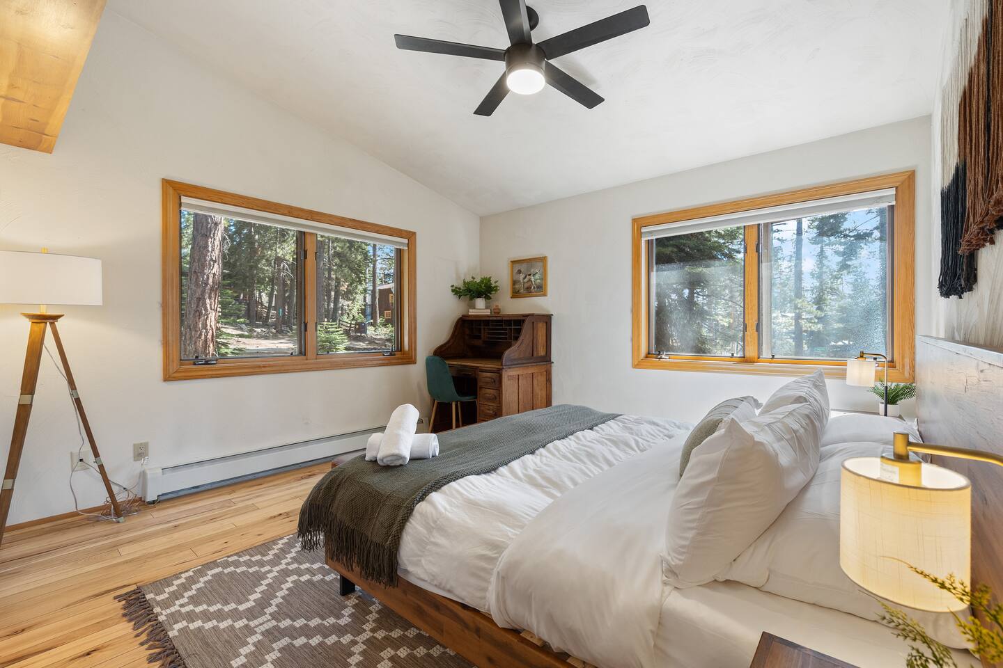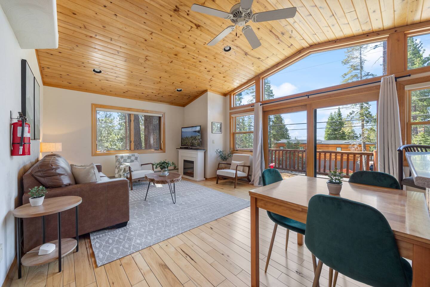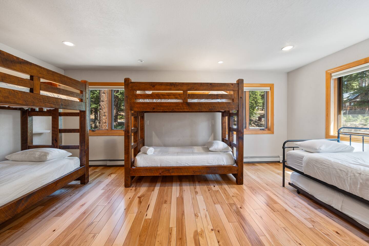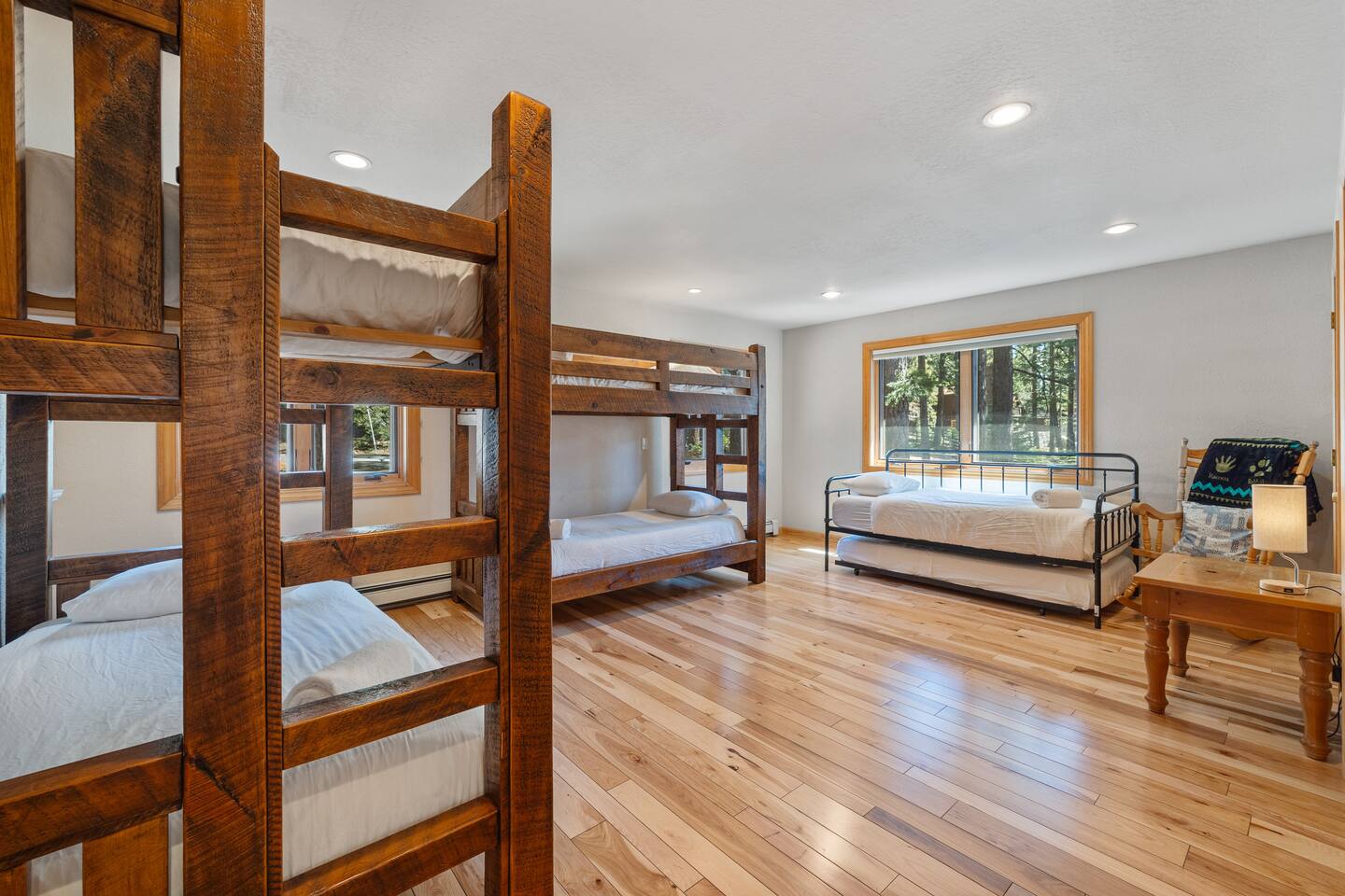 ABOUT THE PROPERTY: ✦ 3560 sq ft home ✦ 6 bedroom with 14 beds ✦ 3.5 bathrooms KEY FEATURES: ✦ Lake access across the street (this is for lake entry, the beach itself is private) ✦ Use of mountain bikes, kayak, and paddle boards free of charge! ✦ Hot Tub ✦ Ping Pong Table ✦ Foosball ✦ Pacman Arcade games ✦ BBQ ✦ Level 2 EV Charger (30A) ✦ Multiple TV's with cable ✦ Separate apartment above garage for additional privacy ✦ Woodburning fireplace ✦ Wood stove ✦ Electric fireplace ✦ Gas fireplace ✦ Pets allowed with an additional fee of $100 ✦ Private fenced in area for your pups! ✦ Kid friendly ✦ 3 King beds & 14 beds total DISTANCE TO LOCAL ATTRACTIONS: ✦ Tahoe City - 4 miles ✦ Palisades Tahoe - 11 miles ✦ Northstar Tahoe - 11 miles ✦ Truckee - 17 miles ✦ Reno - 47 miles ✦ Emerald Bay - 22 miles TRANSPORTATION: ✦ Reno Tahoe International Airport (RNO) - 51 miles ✦ Truckee Airport - 15 miles WHAT TO EXPECT: ✦ The home is located on N Lake Blvd which is a main street and you WILL hear road noise ✦ Due to being on a busy road, dust tends to make its' way into the house easily, especially with the windows open ✦ Like many cabins in Tahoe, there's no AC in the home so it does get warm in the summer ✦ We suggest bringing a 4x4 or chains in the winter (October-March) ✦ We stock firewood periodically. We suggest bringing some (just in case!) if you are going to have a fire. If there's any there, you are welcome to use it. ✦ Partying, smoking, and any violation of the house rules will result in a $1,000 charge ✦ We always suggest getting travel insurance for those "life happens" moments ✦ Any stay longer than 30 days will require signing a lease agreement ✦ You may encounter wildlife such as deer and even bears. Please remove all food from your vehicles, close and latch outdoor trash bins, and keep an eye on any pets you may have with you. ✦Expect to cross a busy road with fast-moving traffic to reach the lake—use caution and designated crossings. ✦Please note that the hot and cold water controls are switched. Turning the handle toward “cold” will actually release hot water, and turning it toward “hot” will release cold water. We recommend testing the temperature carefully before use.