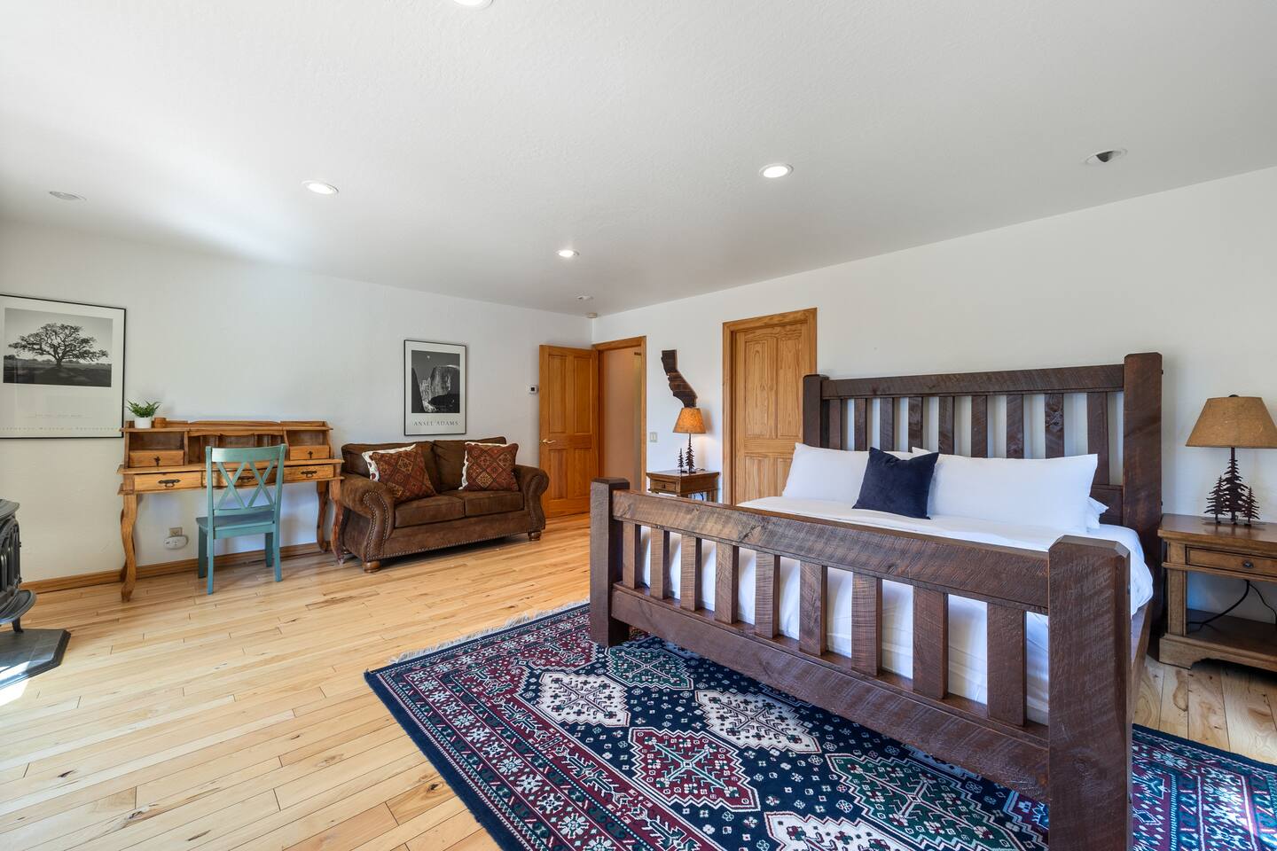 PERSONAL AMENITIES: We provide a starter kit: towels, shampoo, hand soap, toilet paper, paper towels & trash can liners. ENTRY: A lock box is located at the front of the house on the door located next to the garage. OUTDOOR SPACE: The outdoor space includes a hot tub and a fenced in “dog run.” PARKING: There is parking available in the front of the house. The maximum number of vehicles permitted is 7 and street parking is prohibited for short term rental guests per county guidelines. THE DRIVE: During the winter months we experience snow. We recommend either a 4x4 vehicle or chains. INTERNET: There is wifi available throughout the home. BEDROOMS: ✦ Bedroom 1: Main house upstairs - King bed with workspace ✦ Bedroom 2: Main house upstairs - 2 twin bunks and a twin bed with trundle ✦ Bedroom 3: Main house upstairs - Queen bed with workspace ✦ Bedroom 4: Main house first floor - King bed with attached bathroom ✦ Bedroom 5: Main house first floor - Twin over queen bunk with twin trundle ✦ Bedroom 6: Apartment - King bed with workspace and attached bathroom BATHROOMS: ✦ Bathroom 1: Apartment - dual vanity with shower/tub combo ✦ Bathroom 2: Main house first floor - Attached to bedroom with king bed ✦ Bathroom 3: Main house upstairs - Full bath with dual vanity ✦ Bathroom 4: Main house first floor - half bath with single vanity RENTAL AGREEMENT: ✦This property requires a rental agreement to be signed prior to your stay. Details will be provided after booking.