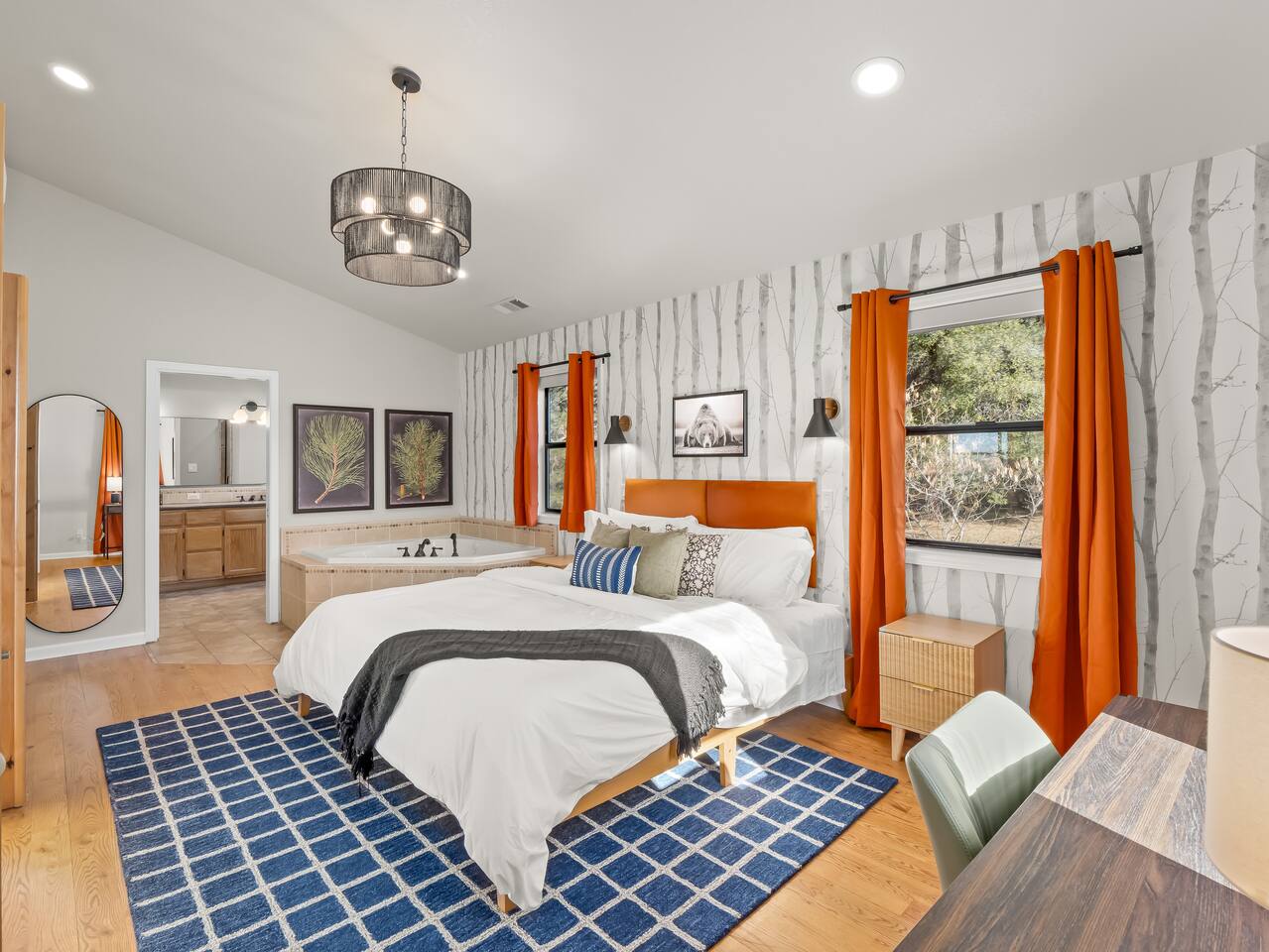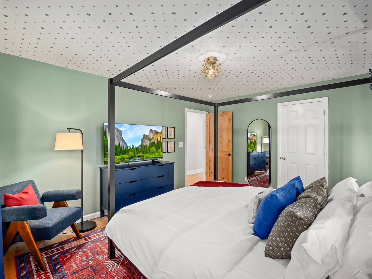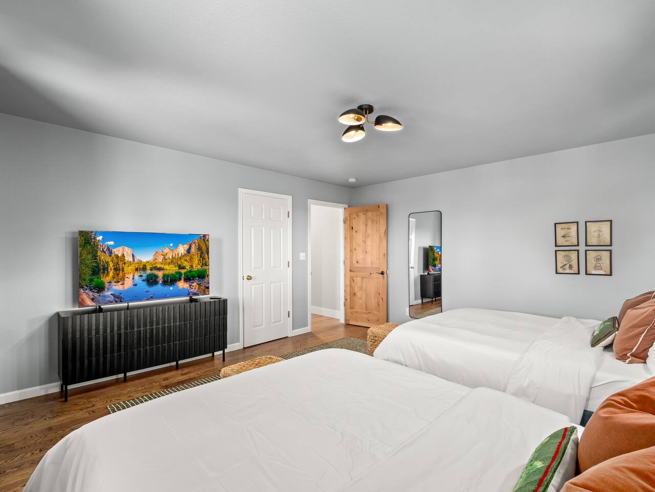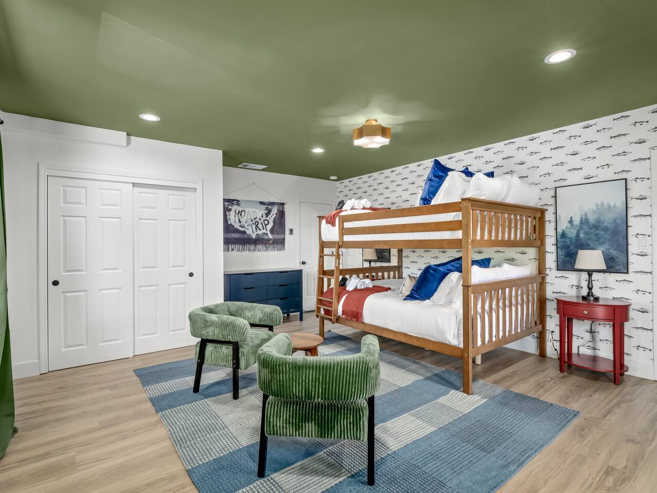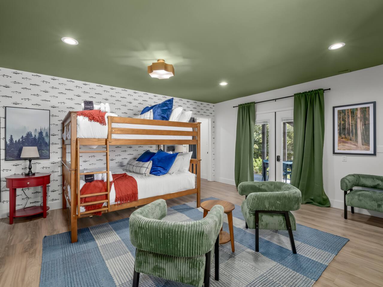 Home sleeps 26 with 7 bedrooms & 4 baths. Experience Yosemite at Sierra Ridge Estate! This professionally designed home is set on 8 scenic acres, and is perfect for up to 26 guests and is ideal for family reunions, work retreats, or vacations with friends. Just 25 mins to Yosemite’s south gate entrance, 10 mins to Bass Lake, & 11 mins to Oakhurst! FEATURES: ✦ Indoor Pickleball Court ✦ Fire Pit ✦ Hot Tub ✦ BBQ ✦ Pet friendly ✦ Movie Theater ✦ Pool Table, Foosball, Arcade Games
