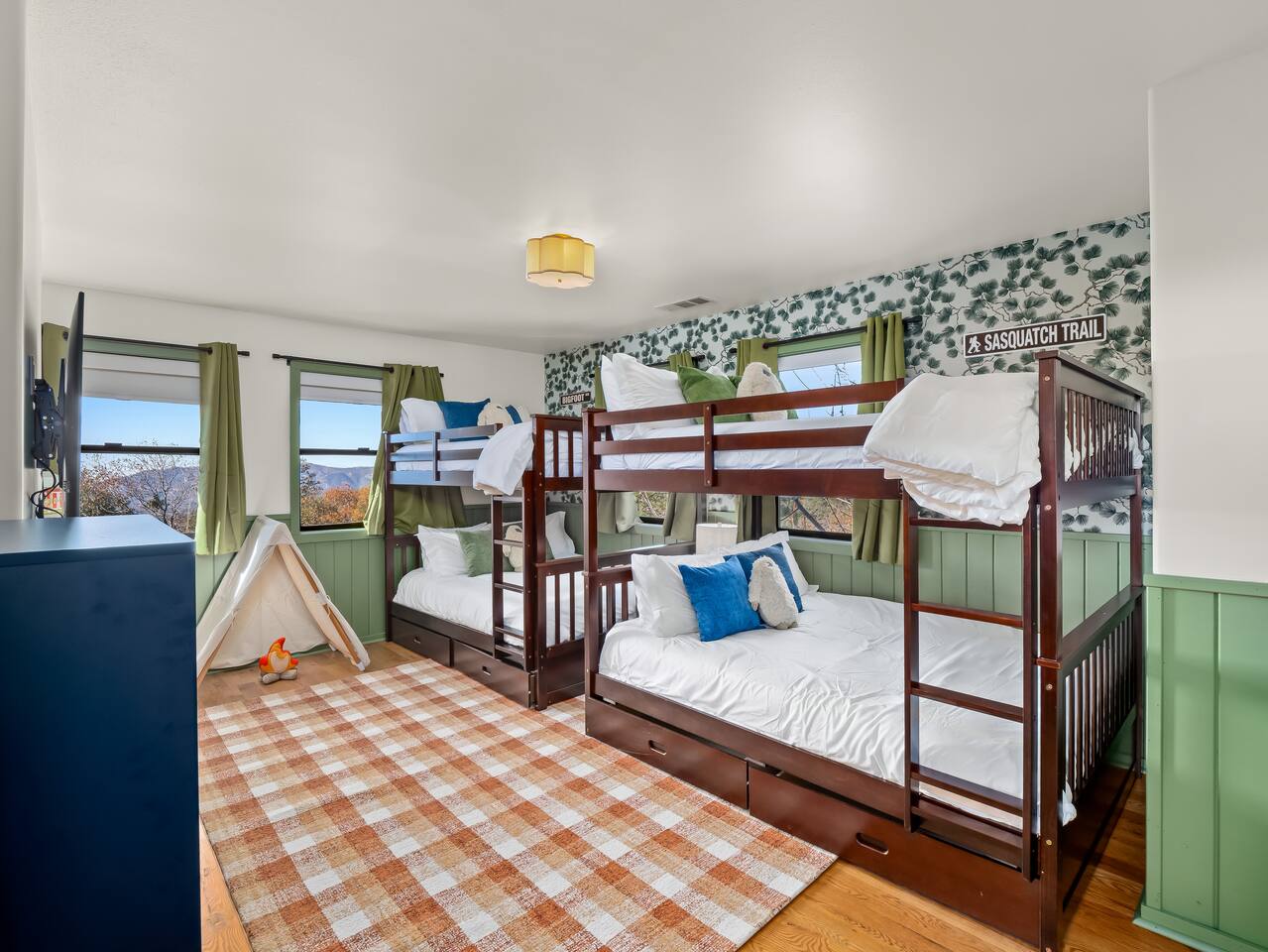 PERSONAL AMENITIES: We provide a starter kit: towels, shampoo, hand soap, toilet paper, paper towels & trash can liners. ENTRY: Our home is equipped with a modern smart lock, providing you with added convenience and security during your stay. A personalized entry code will be provided to you prior to your stay. OUTDOOR SPACE: The outdoor area features a hot tub, fire pit, BBQ, plenty of space with dining tables and chairs, and much more! PARKING: There is plenty of parking available around the house. THE DRIVE: The property is located in mountains, where snow, ice, and wet conditions are common during the winter. We recommend either a 4x4 vehicle or chains. INTERNET: The entire home is equipped with Wi-Fi, ensuring you stay connected throughout your stay. BEDROOMS: ✦ Bedroom 1: 1 King bed ✦ Bedroom 2: 4 Double beds ✦ Bedroom 3: 1 King bed ✦ Bedroom 4: 2 Queen beds ✦ Bedroom 5: 1 King bed ✦ Bedroom 6: 1 Queen bunk beds (game room) ✦ Bedroom 7: 1 Queen bunk beds (downstairs bedroom) BATHROOMS: ✦ Bathroom 1: In bedroom 1 - Dual sink vanity with jetted tub and spacious full body shower ✦ Bathroom 2: Single sink vanity and stand up shower ✦ Bathroom 3: Full bathroom ✦ Bathroom 4: Full bathroom KITCHEN: Fully equipped with appliances: refrigerator, oven, stove, microwave, coffee maker, kettle, and all the basic kitchen essentials; Pots/Pans/Plates/Cups/Utensils IMPORTANT NOTE for HOT TUB: To maintain a clean and pleasant spa environment it is very important to please shower BEFORE using the spa, or, trust us... it will get funky! The spa has a hard time breaking down lotions, oils, perfumes, etc. Additionally, please help us keep the spas tidy by disposing of trash properly. Please note that an additional fee may be charged for excessive dirtiness. RENTAL AGREEMENT: ✦This property requires a rental agreement to be signed prior to your stay. Details will be provided after booking.